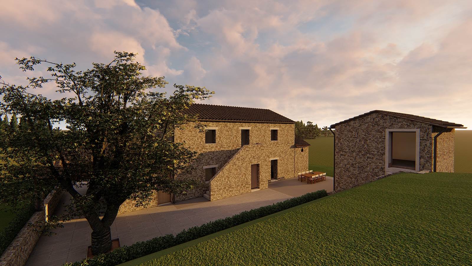 - Main stone farmhouse, rebuilt with extension, currently unfinished and customizable
